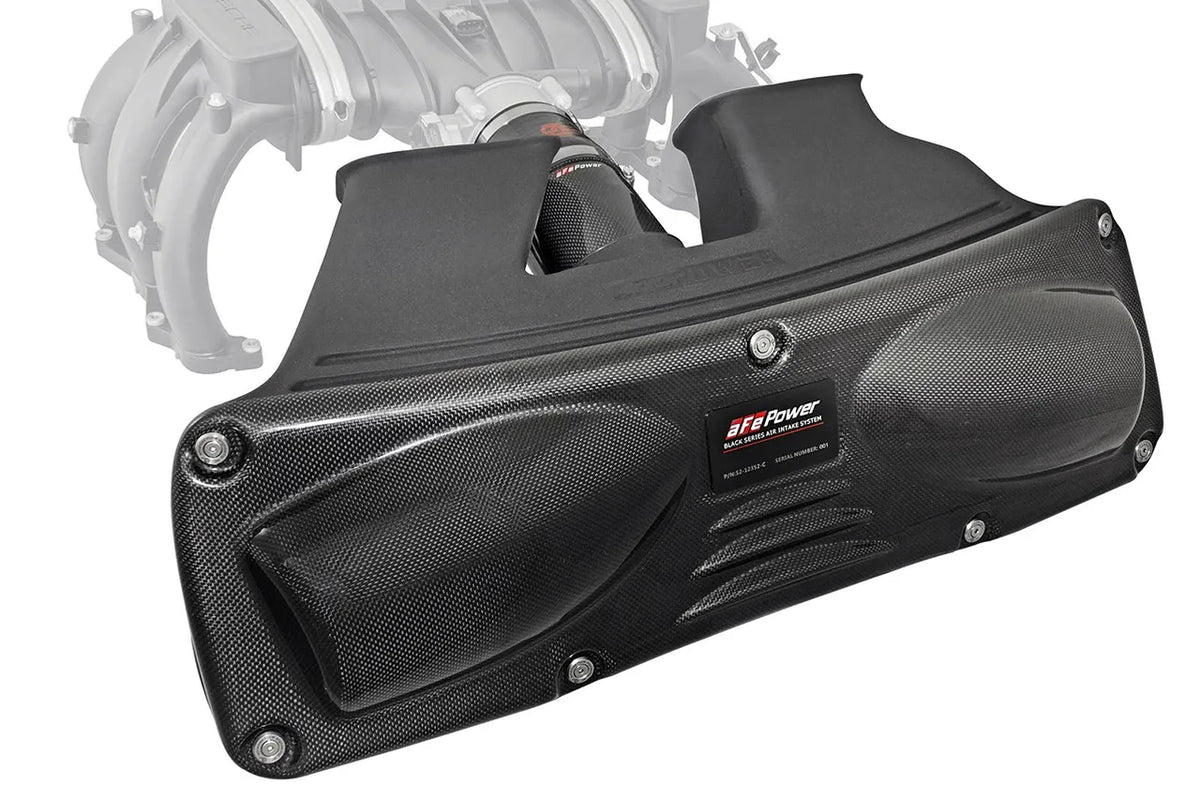 This unique carbon fiber cover is also lightweight high gloss clear-coated plain weave carbon fiber and closes off the housing from unwanted hot engine air. It features a serialized Black Series emblem for authenticity and is secured to the housing using aFe POWER laser etched washers and bolts. This cover will enhance your engine bay appearance.