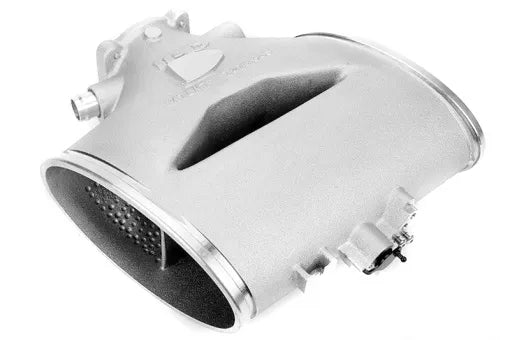 IPD Plenums are products of efficiency that improve intake air flow and increase air velocity. The “Y” shape design and dimpled interior surface make air flow more laminar (less turbulent) improving power and torque higher in the RPM band. You’ll also notice a very slight increase in intake note as a result. Smoother more optimized intake air flow will improve the engine’s drivability. The more efficiently an engine breaths, the more efficiently it produces power. The factory intake will become even more detrimental to performance as you increase the power and torque outputs with other modifications – the IPD plenum upgrade removing the bottle neck in your system.