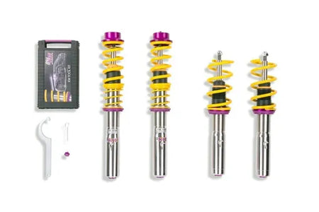 The KW Suspensions Variant 3 coilovers offer race technology for the road, with adjustable compression and rebound dampening. State of the art motorsport technology enables better performance on the streets. The independently adjustable compression and rebound dampening allows for custom driving setups. The exclusive KW patented system has dual level valves that allow for adjustment of the rebound dampening for your road comfort and the compression dampening that controls the driving dynamics.