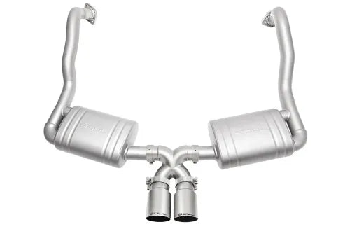DEVELOPMENT: Following the success of our Valved Exhaust and its ability to fight drone, we wanted to offer a lighter, valveless version that offers an invigorating exhaust note (just like valves open mode on our Valved Exhaust) at all times with the least amount of undesirable elements like droning and rasp. This system is perfect for those who crave an aggressive sound to pair with aftermarket headers and not have it be overbearingly loud. The volume level is delightfully greater than that of PSE (Porsche Sport Exhaust) with valves open while retaining a refined exhaust note. This system is also beneficial for track cars looking for maximum flow in an exhaust but must mind decibel readings. The mufflers are incredibly effective at minimizing drone and encourage a fuller, more robust tone befitting of a Porsche.
