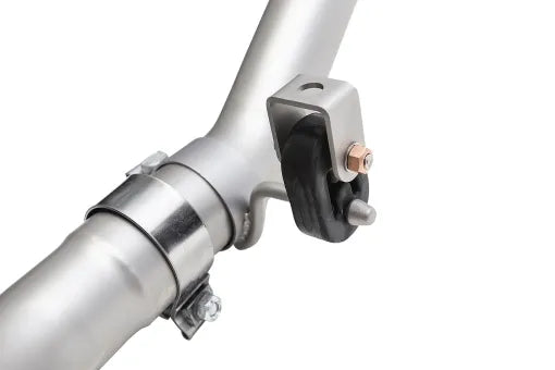BESPOKE BRACKETS: Hangers and brackets welded directly to the exhaust have a tendency to break under racing use – a quick way to ruin a track day. SOUL’s mounting solution sheds over 5 lbs compared to the factory mounts and our components are easy to repair or replace in the event of a track incident. The forward piping is connected to a SOUL trans mounting brace – with bespoke versions for both manual and PDK trans – via heavy duty Mikalor band clamps. We’ve added additional support to the over axle piping through rubber vibration dampeners to reduce the stress of flex and vibrations on the entire exhaust system.