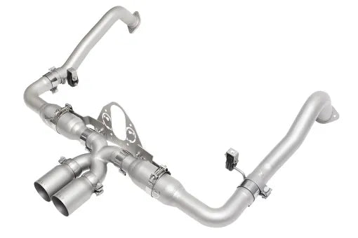 SOUND: This racing system was designed primarily for track use and performance over sound attenuation – it will be VERY LOUD, and even with resonators drone will be present. We do not recommend attempting to run this exhaust with aftermarket headers on the street. That said, it sounds absolutely amazing at full bore. If you’re looking for a more refined exhaust experience for street use, consider our Valved Exhaust System.